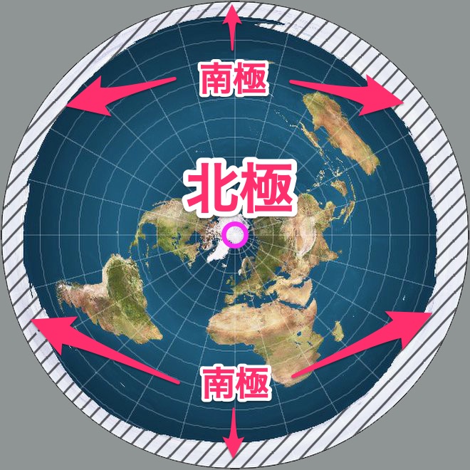 フラットアースにおける北極・南極の位置
